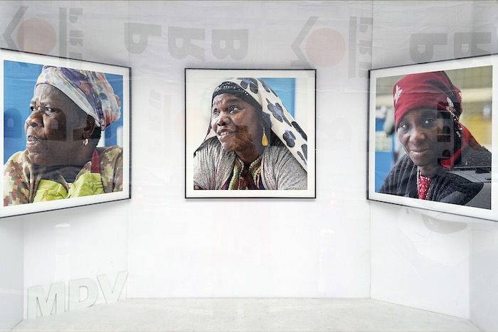 L'exposition à la galerie MDV seul lieu d'art contemporain à Arras, présente un triptyque des portraits d'entretiens réalisés au Blanc-Mesnil dans le cadre du projet de création Le Tilia (2021-2024). La galerie est une vitrine donnant sur la rue Baudimont.